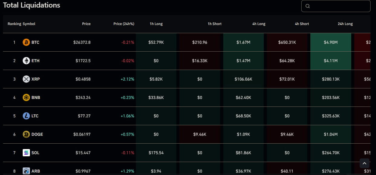 BTC liquidou $ 4,90 milhões