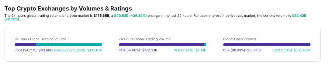 Comparação do volume total de negociação spot interna e volume de negociação de derivativos. Fonte: TokenInsight