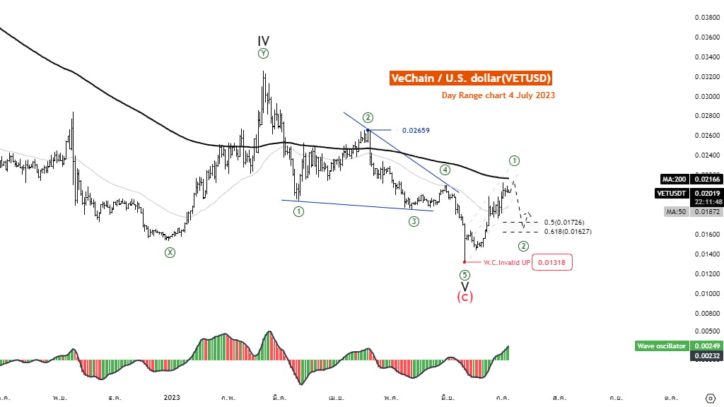 Indicadores técnicos VeChain/dólar americano (VETUSD): O preço está abaixo do MA200, indicando uma tendência de baixa, o oscilador de onda é um momento de alta