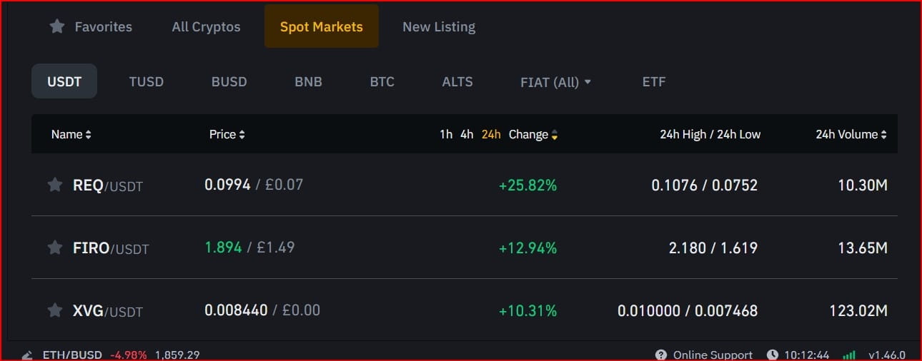Como você pode ver na lista, a moeda com melhor desempenho é o par de criptomoedas REQ/USDT e a segunda moeda da lista é o par de criptomoedas FIRO/USDT.