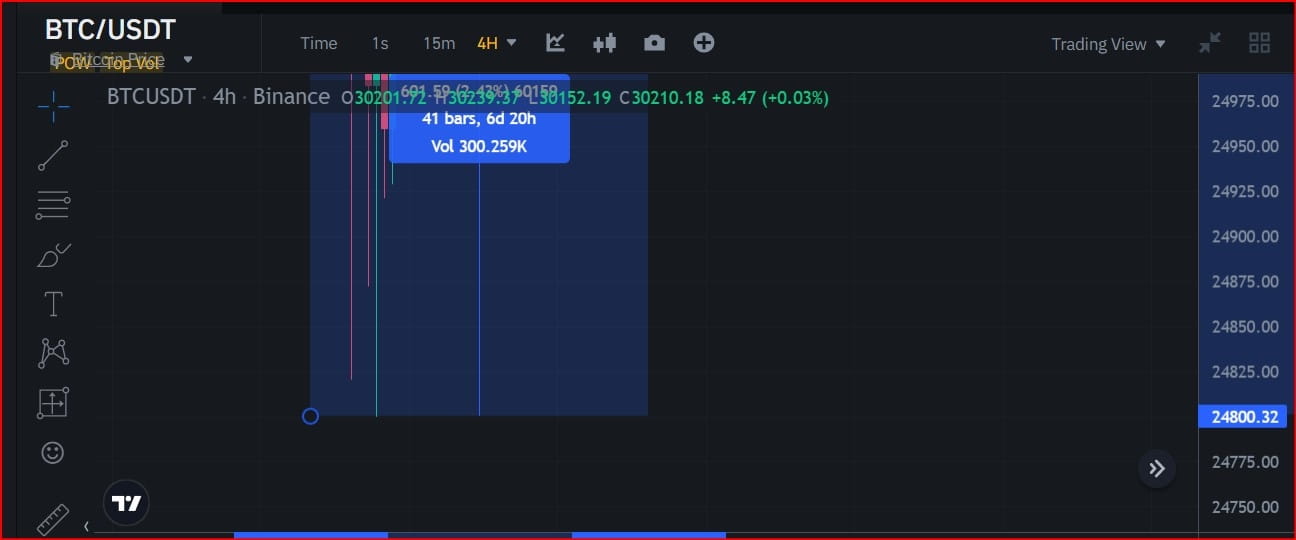 Por exemplo; Agora, como você pode ver nos dados do gráfico de preços de velas, o par de criptomoedas BTC/USDT está sendo negociado atualmente em seu preço mais baixo recente.