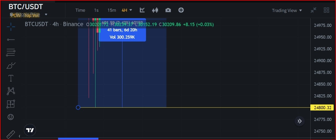 E como você pode ver, o preço mais baixo recente do par de criptomoedas BTC/USDT está exatamente em $ 24.800,32
