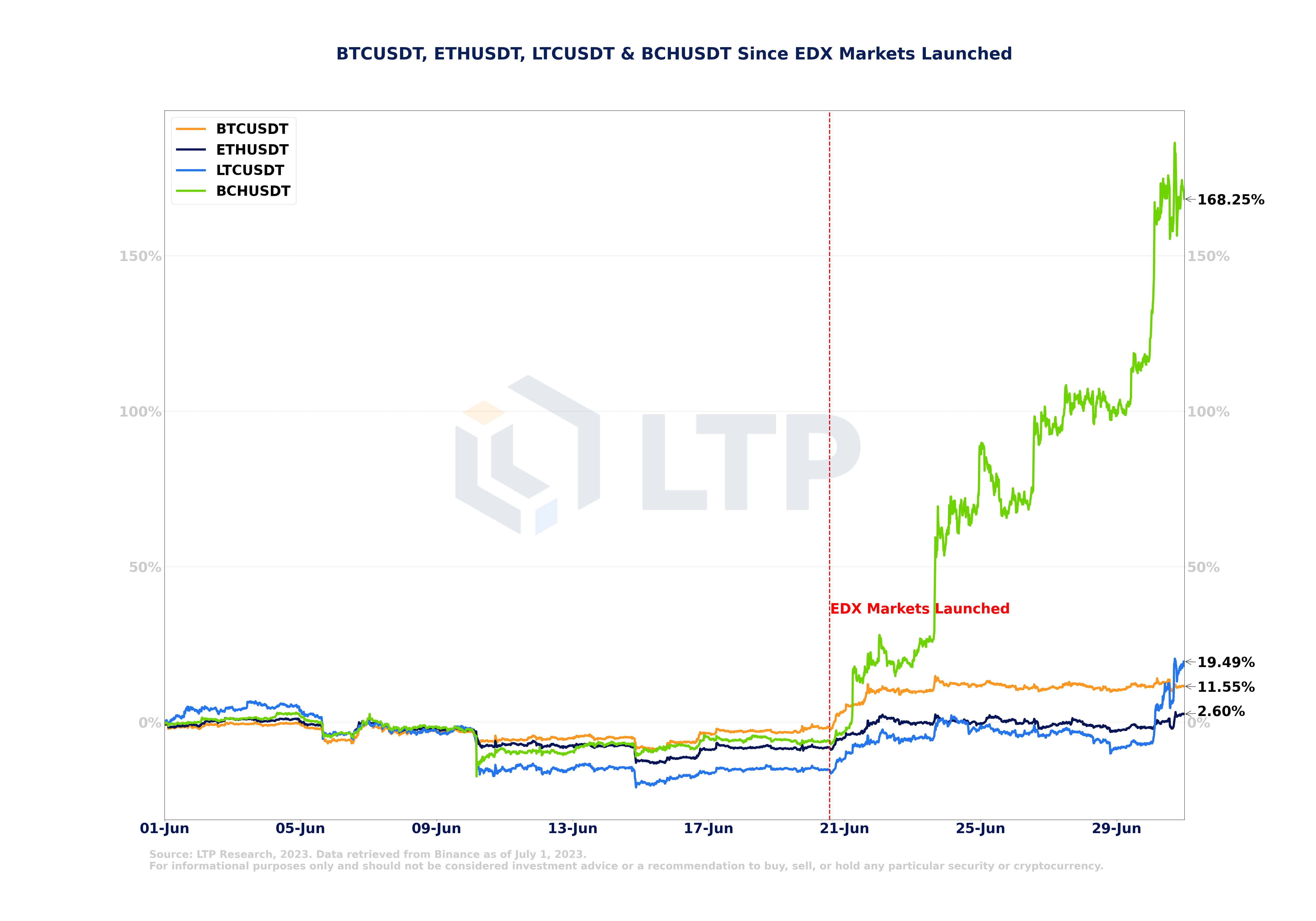 Em 20 de junho, a EDX Markets, uma bolsa de criptomoedas apoiada pela Citadel Securities, Fidelity Digital Assets e Charles Schwab Corp., anunciou o lançamento da negociação de Bitcoin ($ BTC), Bitcoin Cash ($ BCH), Ethereum ($ ETH) e Litecoin ($ LTC).