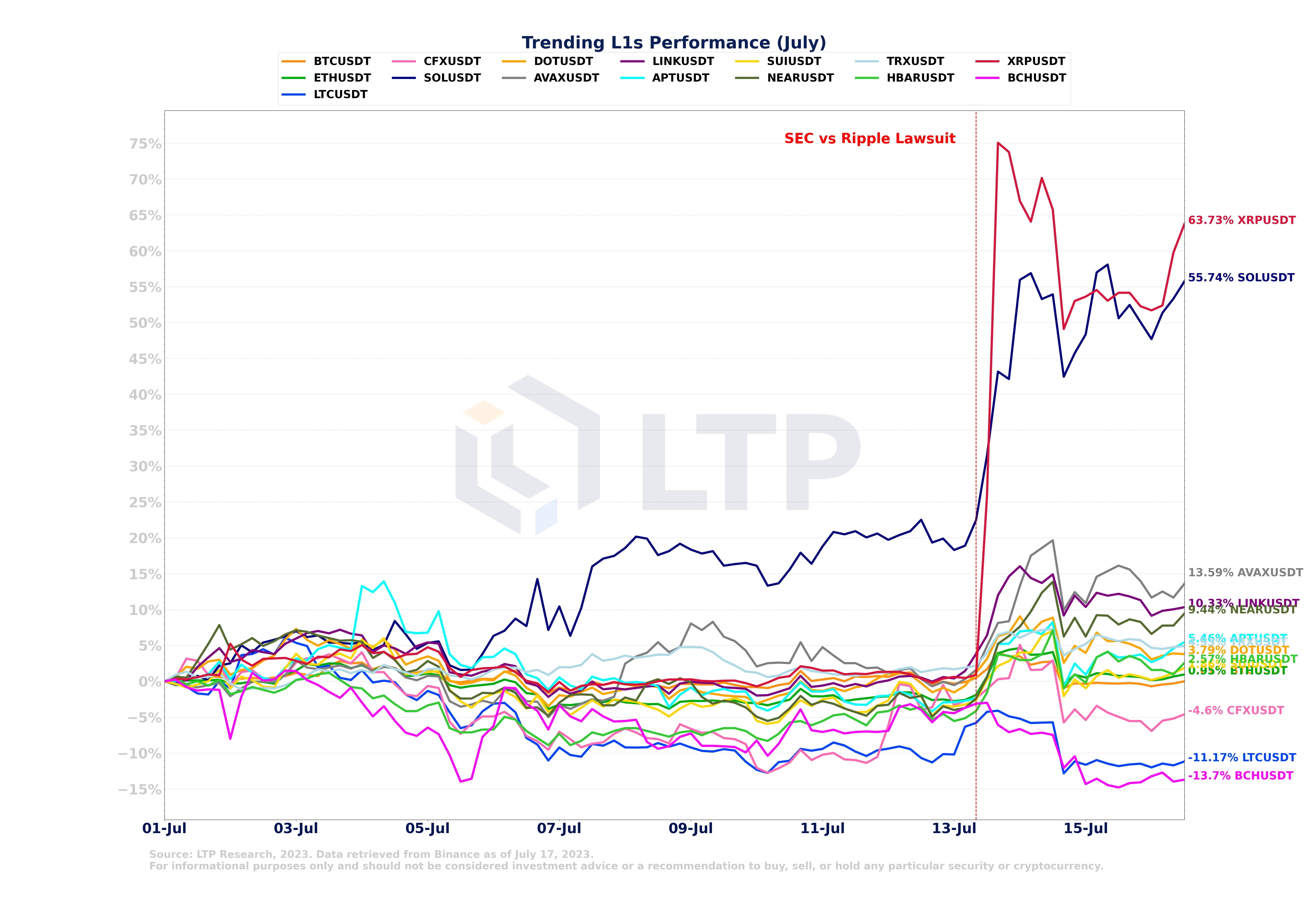 Em 13 de julho de 2023, o tribunal concluiu que as vendas institucionais de XRP da Ripple constituíam a oferta e venda não registradas de contratos de investimento em violação à Lei de Valores Mobiliários, mas suas vendas programáticas de XRP (venda por meio de bolsas) não. Como resultado, a decisão do tribunal foi um veredito misto para a Ripple.