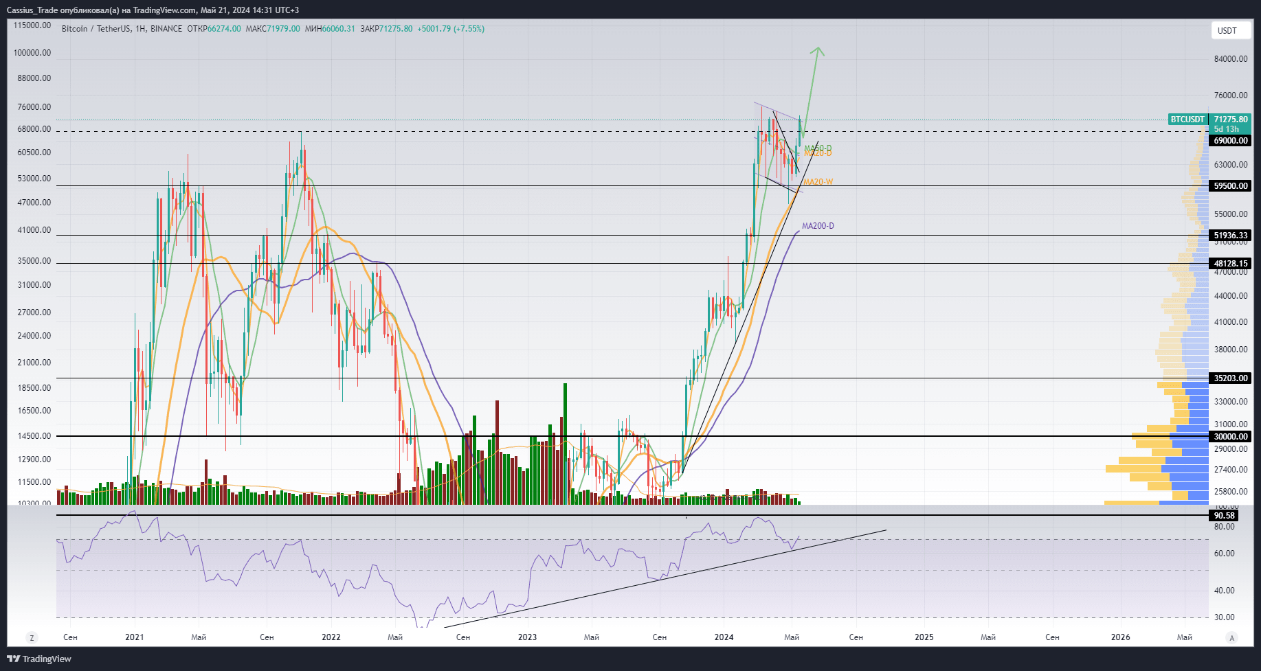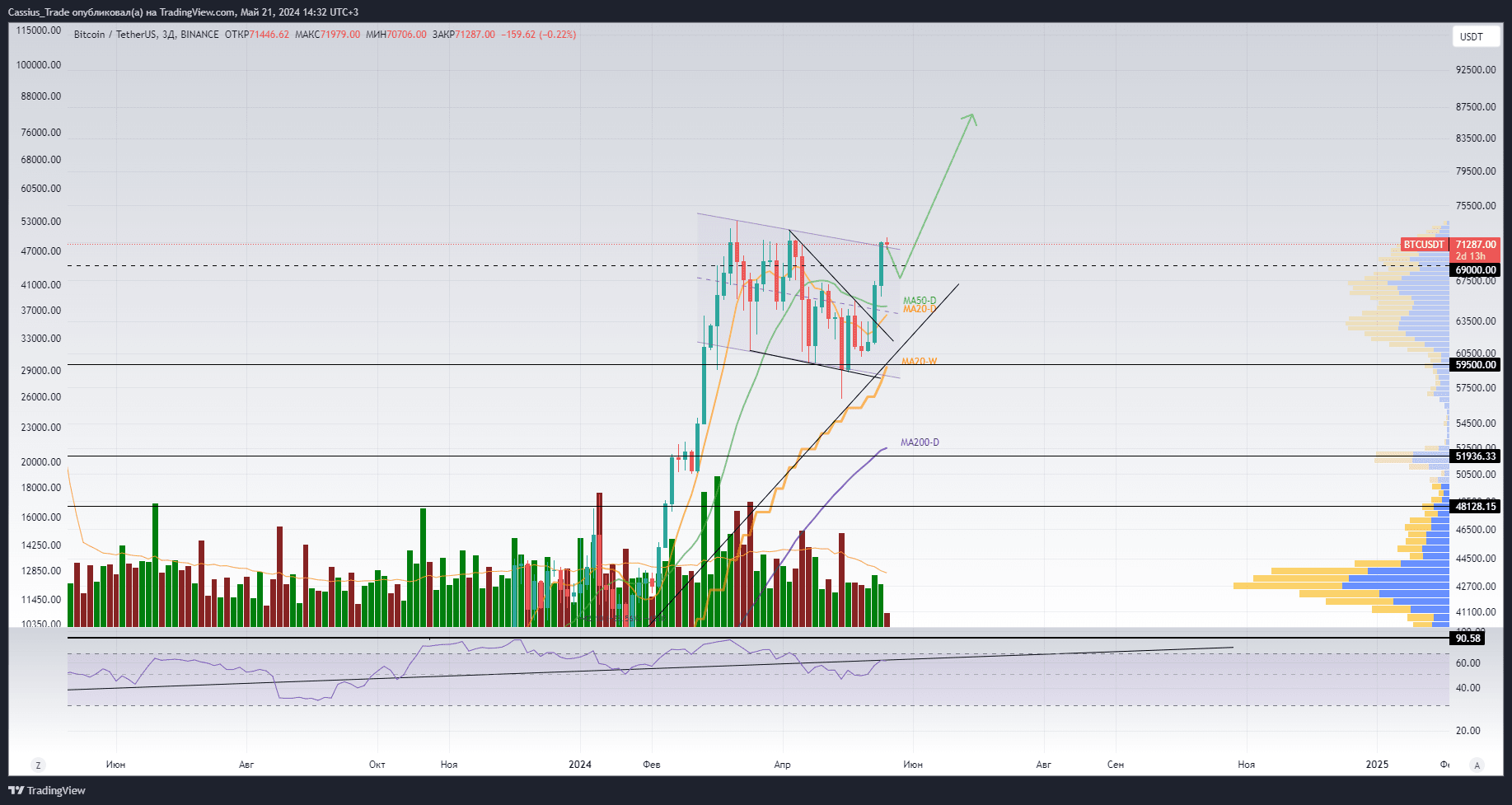 Portanto, o Bitcoin provavelmente conseguirá se firmar acima dos US$ 71 mil e começará a atualizar sua máxima histórica ✔️
