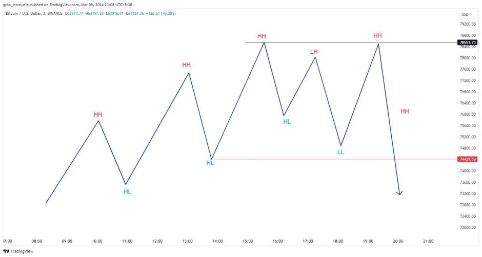 Temos que usar o mínimo mais alto que ocorreu pouco antes do último máximo mais alto.