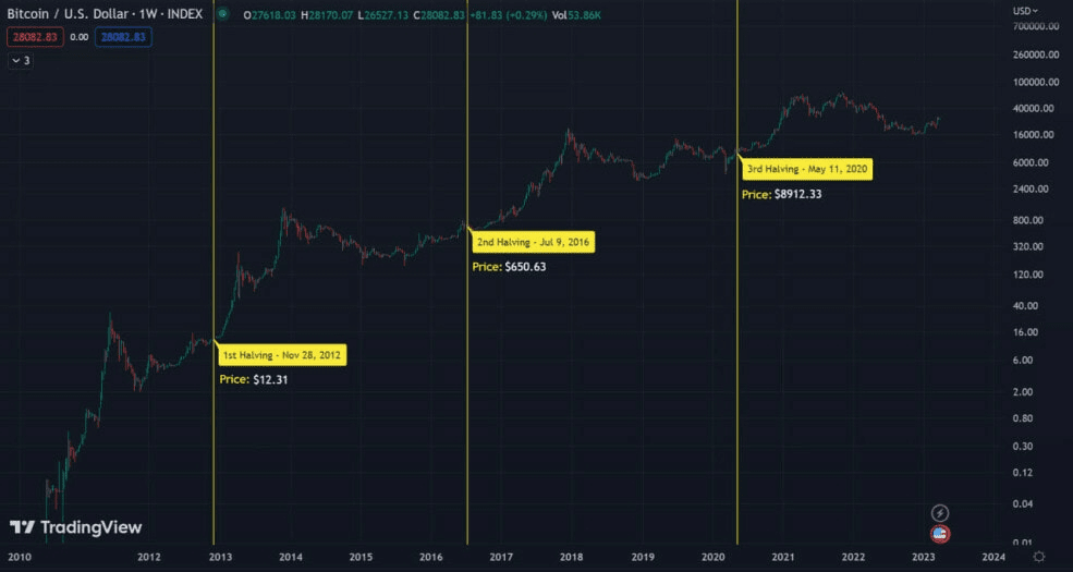 A partir daí, você pode ver que após o halving do Bitcoin no passado, o preço do Bitcoin cresceu fortemente.