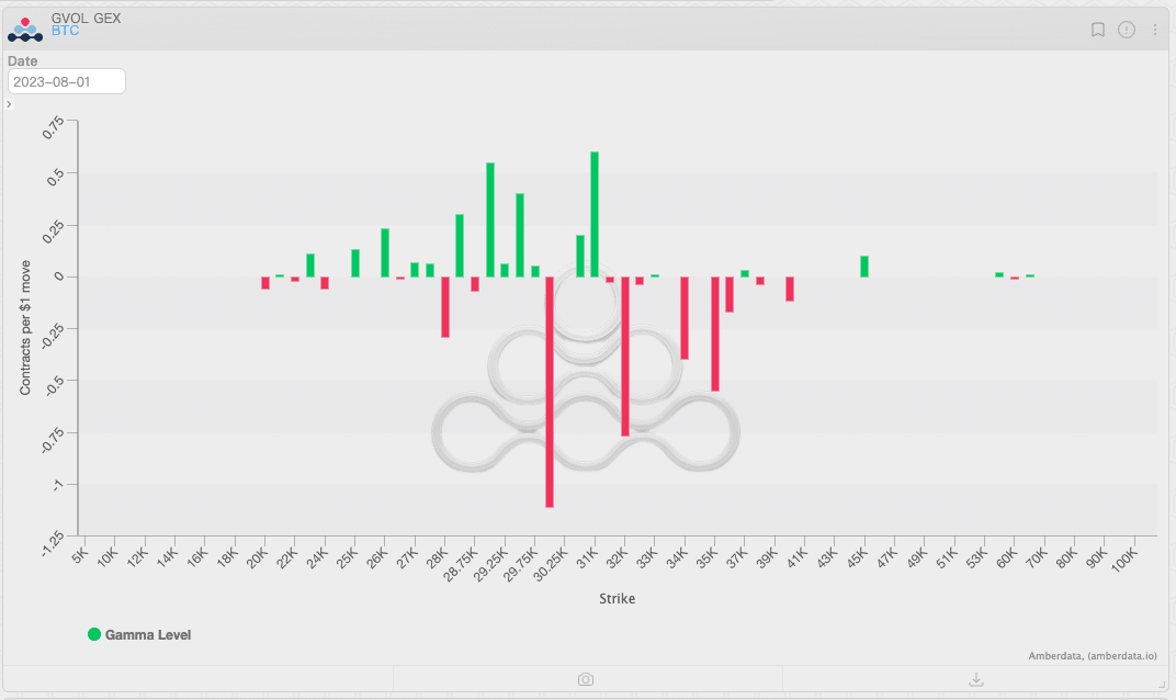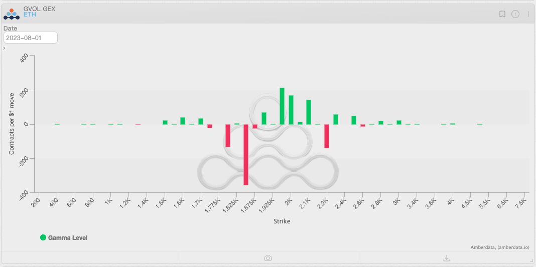 Distribuição da exposição gama BTC e ETH, Fonte: Amberdata Derivatives