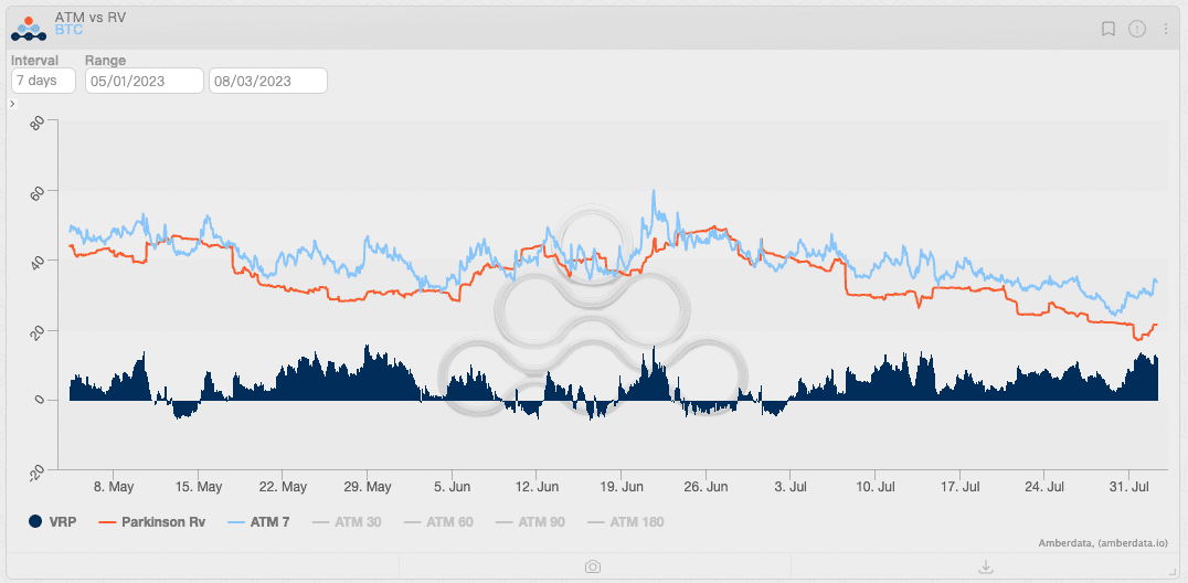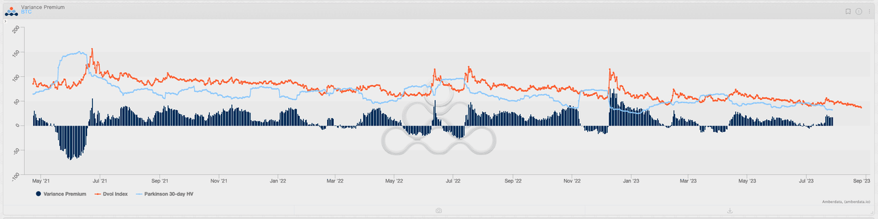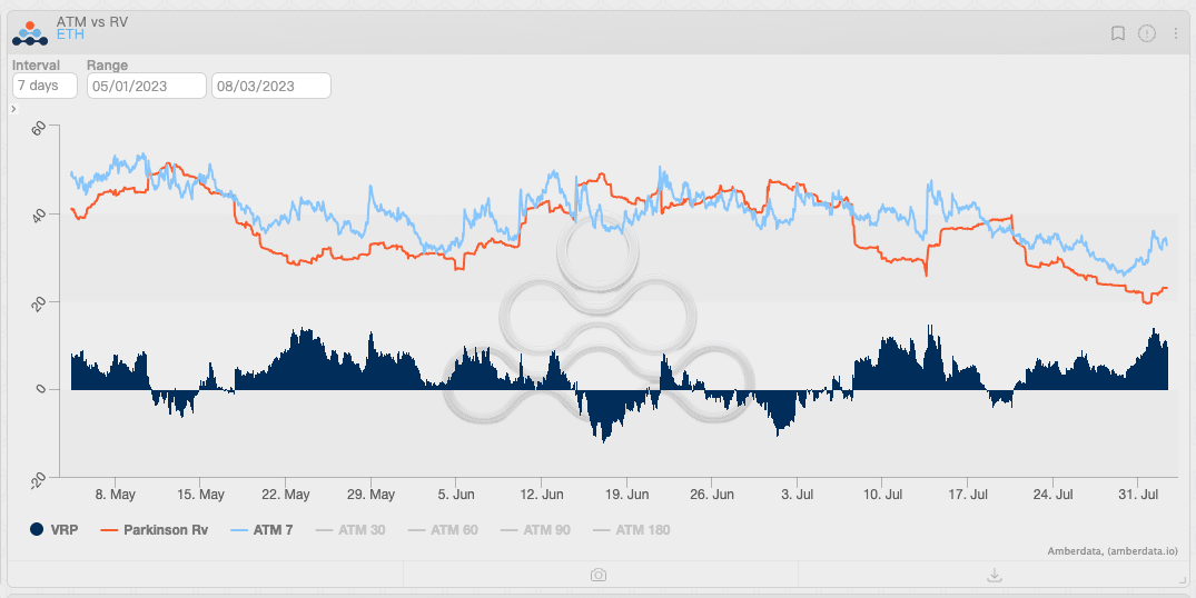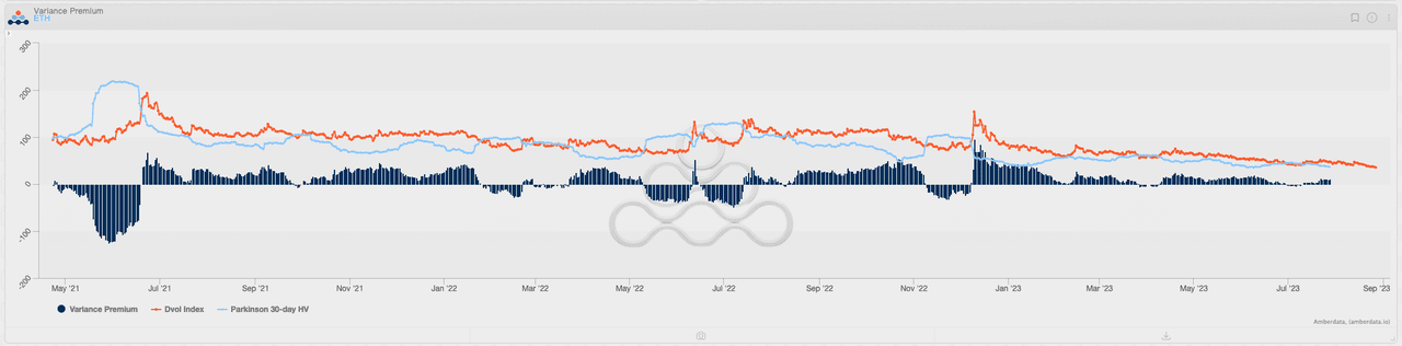 Mudanças no VRP de BTC e ETH, fonte: Amberdata Derivatives