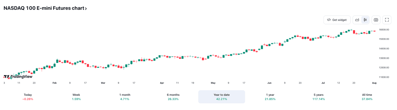 Mudanças YTD do índice Nasdaq e do preço do BTC, fonte: Tradingview