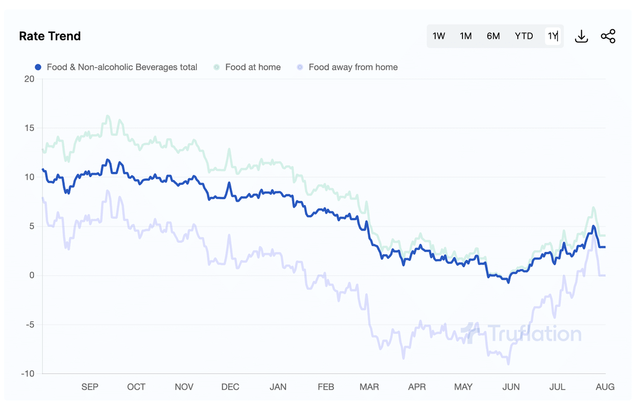 Dados de inflação de alimentos em tempo real nos EUA, em 2 de agosto de 2023. Fonte: Truflation.com