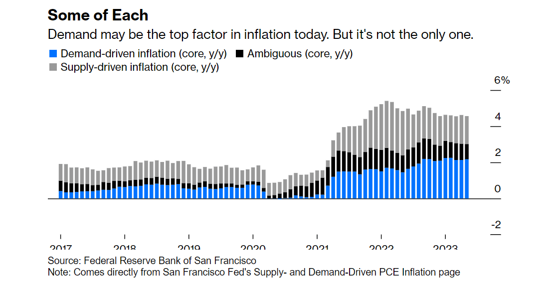 Mudanças na proporção de fatores líderes na inflação desde 2017. Fonte: Federal Reserve de São Francisco