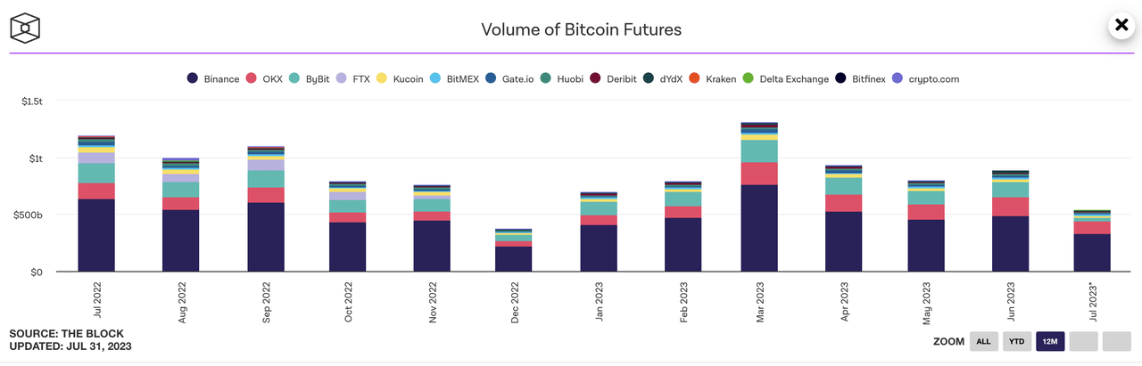 Para o mercado de criptomoedas, os investidores parecem ter se acostumado à vida cotidiana com altas taxas de juros. A falta de liquidez deixou os investidores com pouco interesse em "negociar". A maioria dos investidores está sentada à margem. Como resultado, o volume mensal de negociação à vista foi ainda menor do que o Natal em julho, enquanto o volume de negociação de contratos BTC Delta 1 foi apenas um pouco melhor do que o Natal e o Ano Novo. Parece que o mercado de criptomoedas tem "férias de verão".