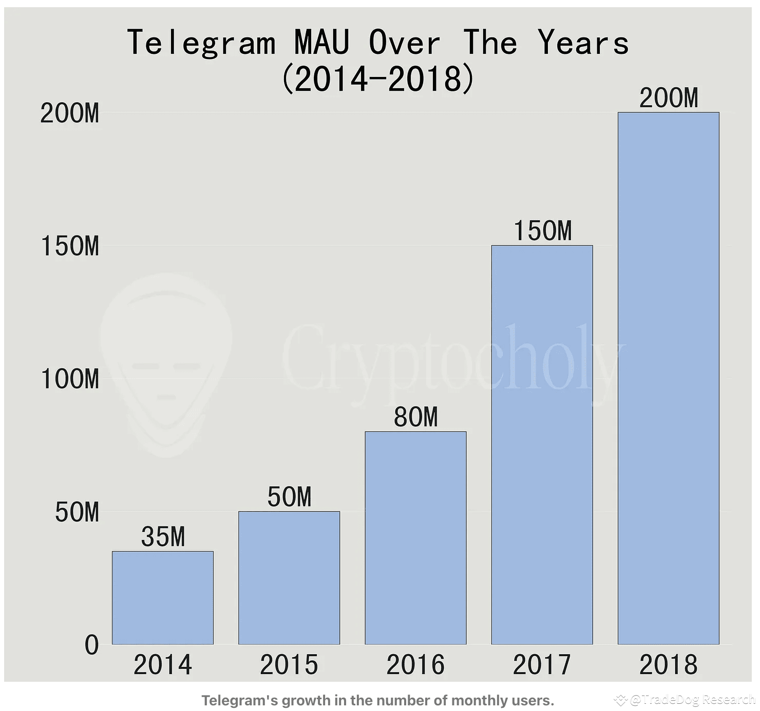 Life is like a sine wave; a trough doesn’t mean that you can’t make it up to the crest. Consistency and perseverance yield results, and the same can be seen in the story of Telegram and TON.Early Success of Telegram Back in 2017, crypto rode the first true bull market trend. Simultaneously, there was a noteworthy innovation sprouting its adoption: Telegram. It had already reached 200 million Monthly Active Users with an astonishing 54.6% CAGR over the past four years (2014-2018).