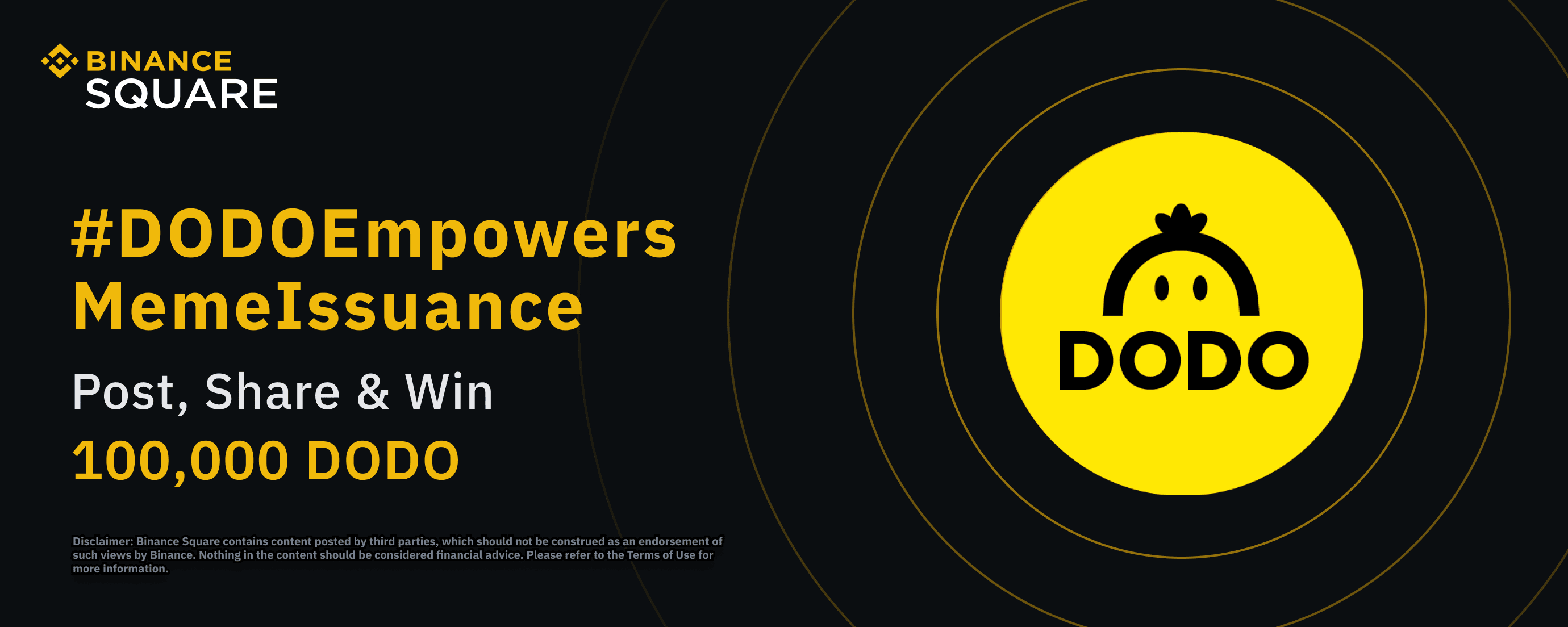 Postați conținut în pătrat folosind hashtag-ul #DODOEmpowersMemeIssuance pentru a avea șansa de a distribui recompensele. Așteptăm cu nerăbdare să auzim de la tine despre opiniile și gândurile tale despre viitorul ecosistemului DODO.