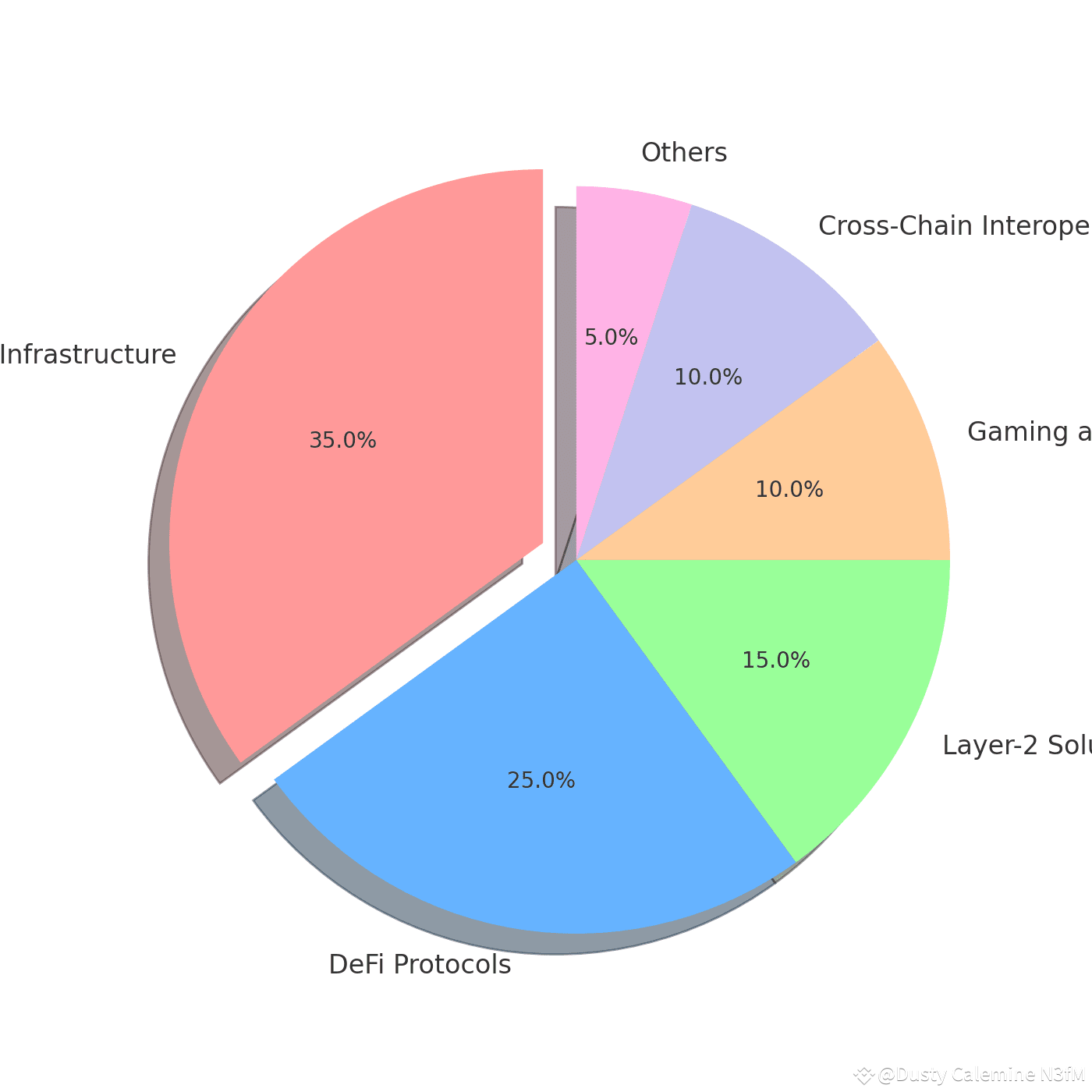 This chart illustrates the high level of funding going toward specific blockchain projects, especially those focused on scaling solutions and DeFi.