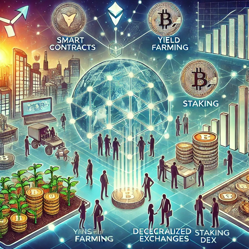 Finanța descentralizată (DeFi) este un concept inovator în lumea criptomonedelor care oferă acces la servicii financiare fără intermediari tradiționali precum băncile sau instituțiile financiare. Toată activitatea financiară din DeFi are loc prin contracte inteligente — programe speciale care îndeplinesc automat termenii acordului folosind blockchain-ul.
