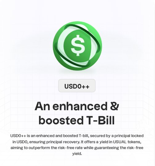Un produs generator de randament: USD0++ este o versiune lichidă de miză a USD0, acționând ca un cont de economii pentru activele din lumea reală, cu o blocare de 4 ani. Oferă recompense, rămânând transferabile, cu recompense USUAL care stimulează creșterea și adoptarea USD0.