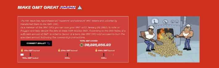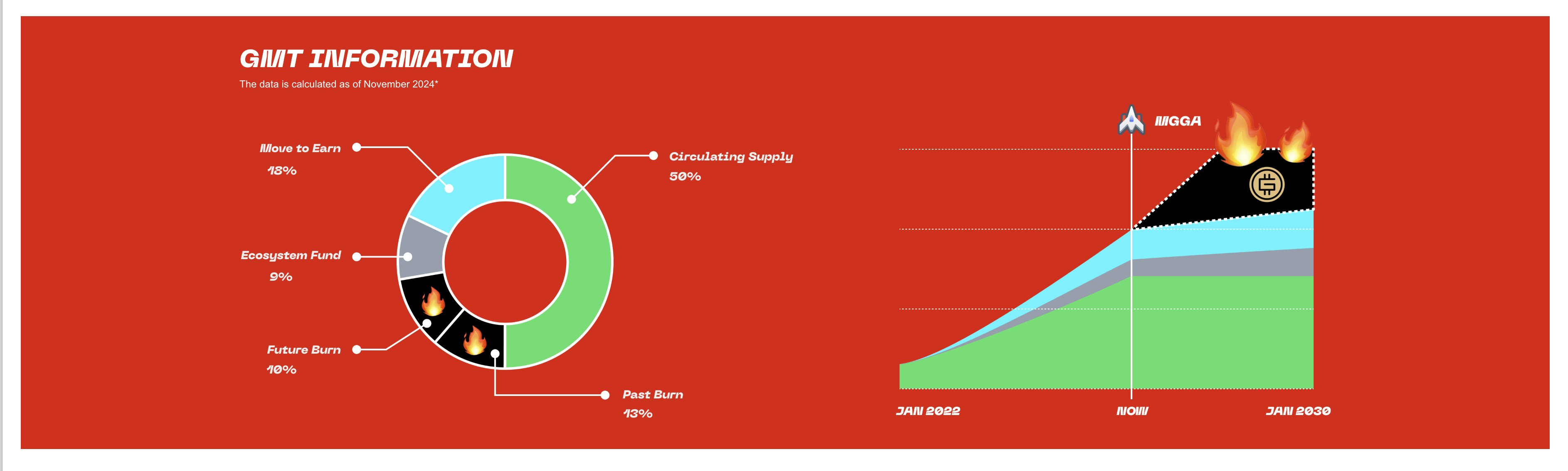 Pe 14 noiembrie, echipa GMT a lansat pe platforma oficială X eticheta emblematică: #MGGA (Make GMT Great Again) însoțită de un emoji „foc”. Atunci, piața a speculat că echipa GMT se pregătește pentru o ardere masivă a tokenurilor GMT. #GMT $GMT