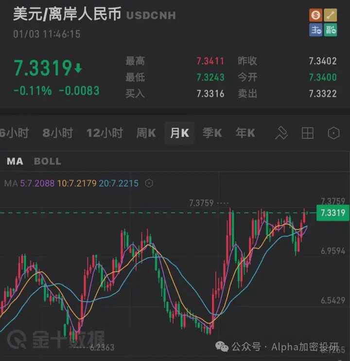 1. Cursul de schimb RMB continuă să atingă noi minime, în prezent 7,33, un nou minim din 22 octombrie