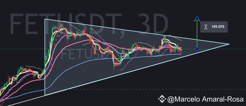 Padrão claro de triângulo. Cripto que tende a crescer muito com o setor de IA. Preço está justo (30D). Primeiro alvo na casa dos +10%, podendo chegar a ~170%, caso v encontrar o topo histórico, após rompimento de resistência do triângulo.