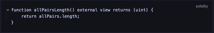 Această funcție returnează lungimea array-ului `allPairs`, adică numărul total de perechi de tranzacționare create până în prezent.