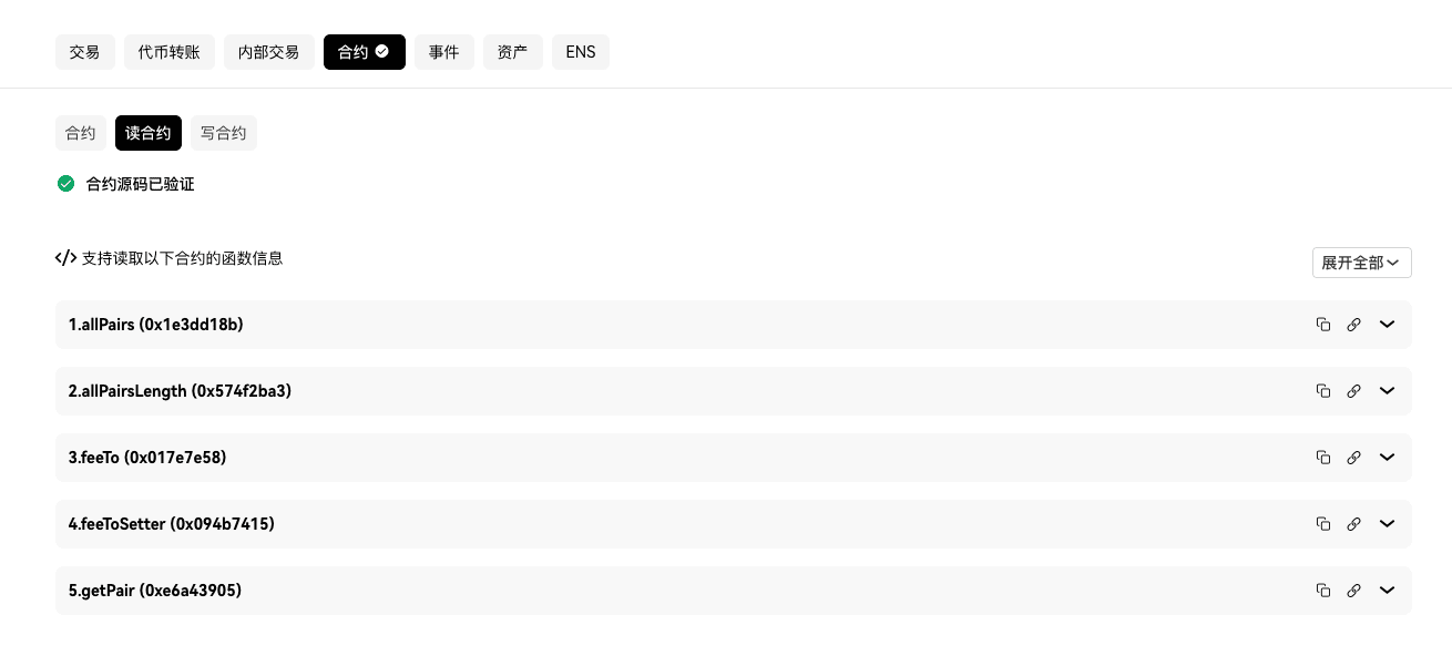 Notă: Consultați adresa contractului UniswapV2Factory în browserul blockchain pentru a vedea informațiile funcțiilor contractului.