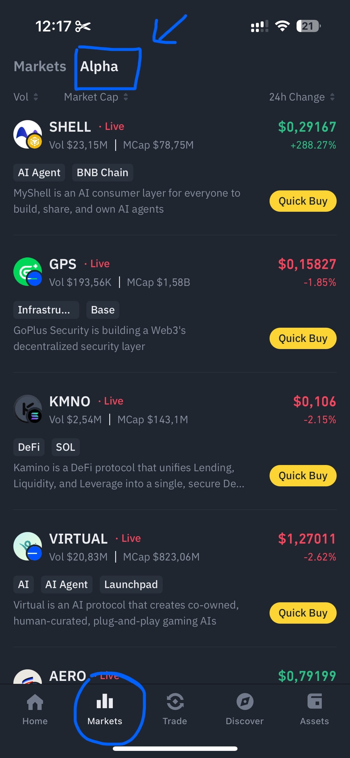 4️⃣ Explorați secțiunea Binance Alpha [Piață -> Alpha]