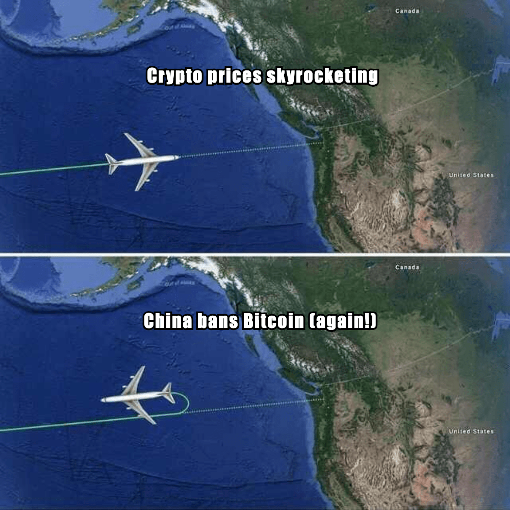În septembrie 2021, China a interzis comerțul și mineritul criptomonedelor, provocând o scădere imediată a Bitcoin-ului. Deoarece China era o putere de minerit, investitorii au intrat în panică. Dar, în timp, minerii și-au mutat operațiunile în SUA și Kazahstan, iar BTC și-a revenit.