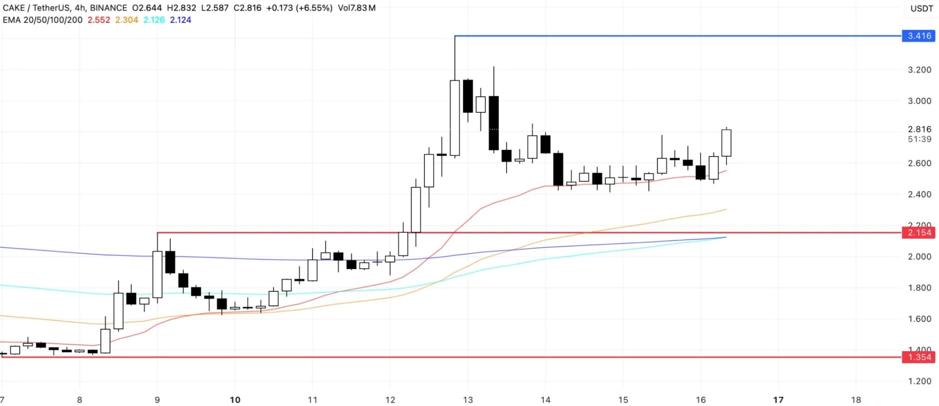 $CAKE (PancakeSwap) взлетел на 55% после того, как рыночная капитализация BNB вновь обошла Solana. Интерес к экосистеме BNB растёт, что положительно сказывается на цене токена.