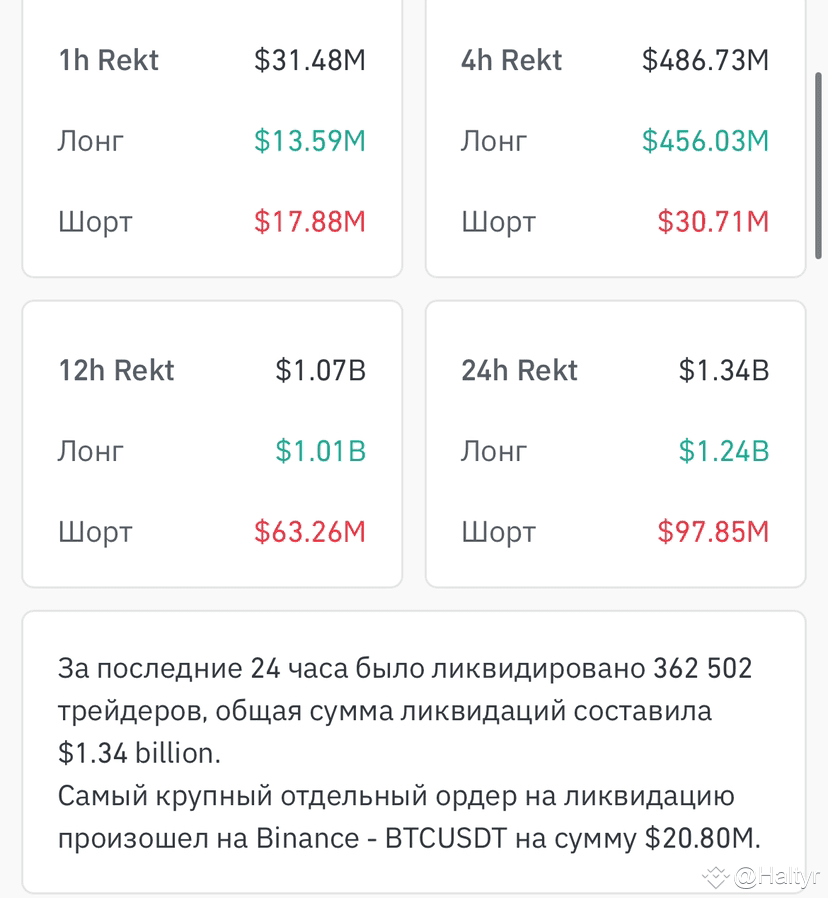 За последние 24 часа было произведено общих ликвидаций на 1.34 ярда (billion)