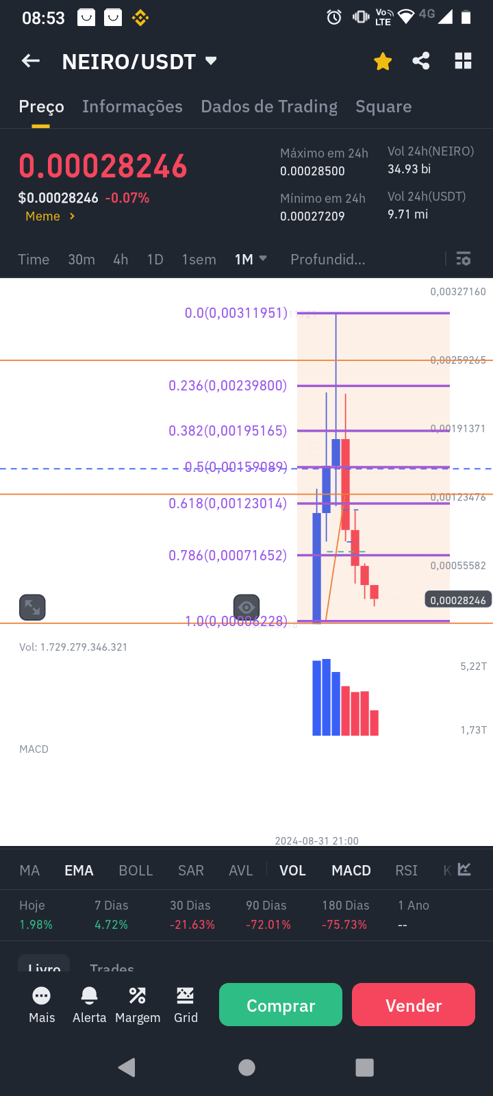 Pe baza graficului lunar (imagine) putem fi pe cale să intrăm în a treia undă Elliott, deoarece semnalele indică faptul că ieșim dintr-o a doua undă corectivă. Prețul a scăzut, dar nu a depășit începutul primei unde, respectând un punct important de suport. În plus, observăm o reducere a volumului de tranzacționare în timpul acestei corecții, ceea ce sugerează că vânzătorii își pierd forța. Această comportare este tipică înainte de o puternică revenire în creștere, care caracterizează a treia undă în teoria lui Elliott.