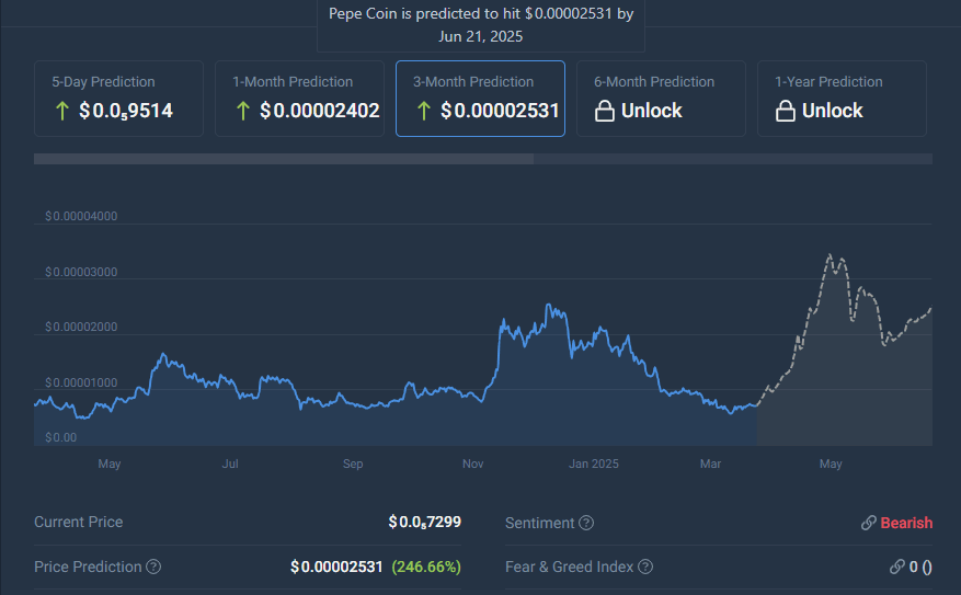 Analiștii prezic că Pepe poate atinge $ 0.0000260 până în al doilea trimestru din 2025, dacă continuă să profite de încurajarea comunității și să își dezvolte ecosistemul.
