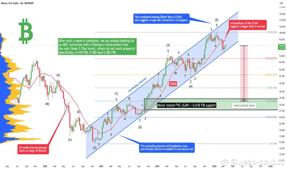 We're in a massive ascending channel on the weekly chart. While it looks bullish, these channels eventually break. 💔 And when they do, it can be dramatic! 💥