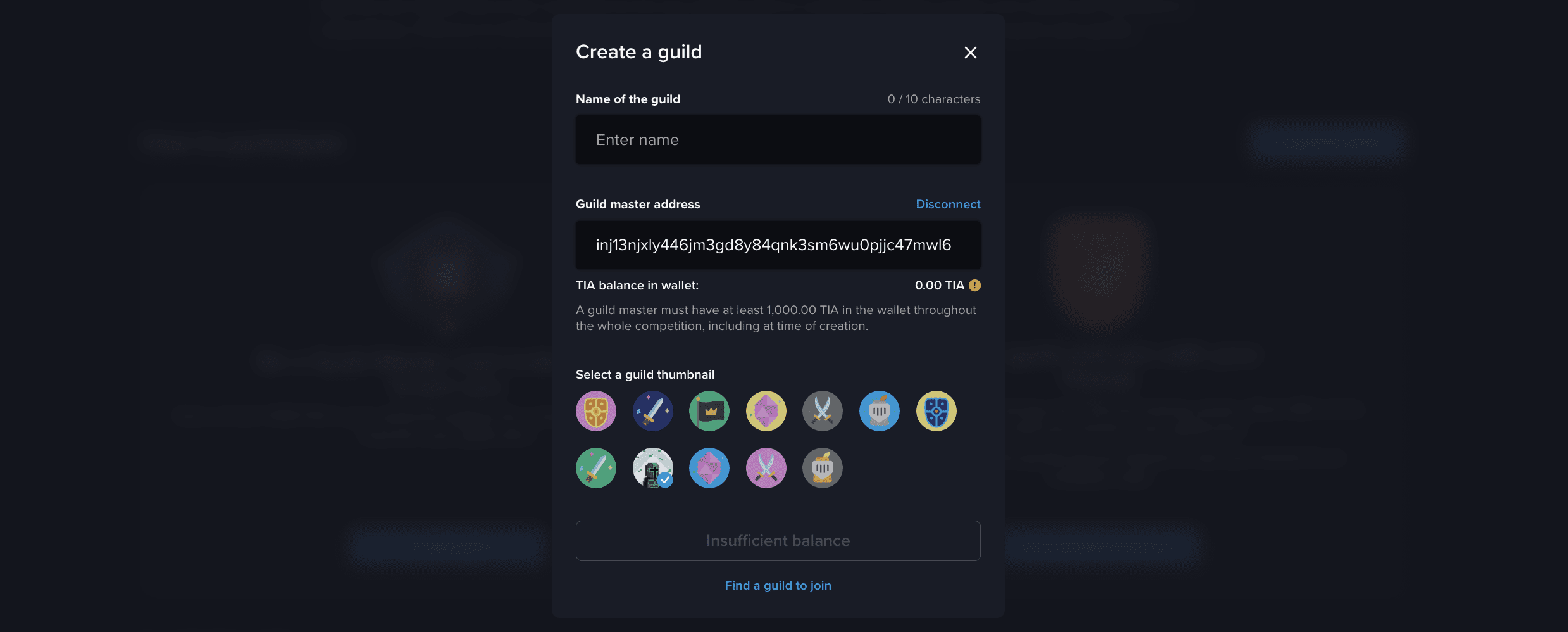 Pentru a-ți asuma rolul unui maestru de breaslă, este esențial să deții un minim de 1.000 de TIA în portofel. Faceți clic pe butonul „Creați breasla” pentru a iniția procesul de înființare a propriei bresle cu un nume preferat. În calitate de maestru al breslei, aveți opțiunea de a alege un profil dintre opțiunile oferite sau de a selecta un NFT din adresa portofelului dvs. pentru a servi ca miniatură a breslei.