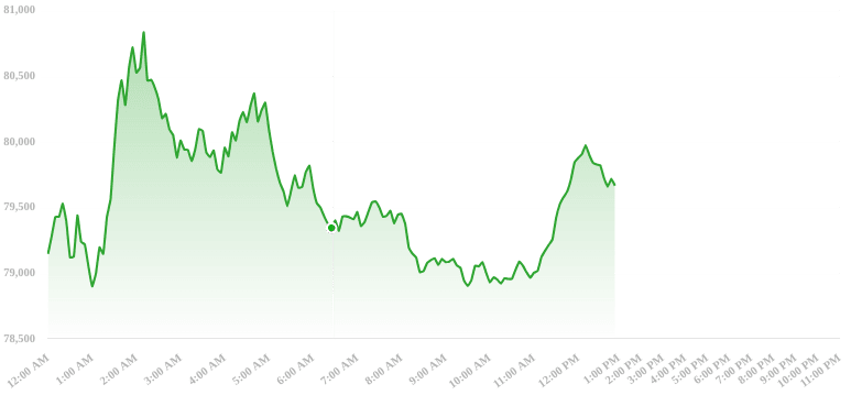 Maximul intraday este de 80936.0 USD și minimul intraday este de 75773.0 USD.