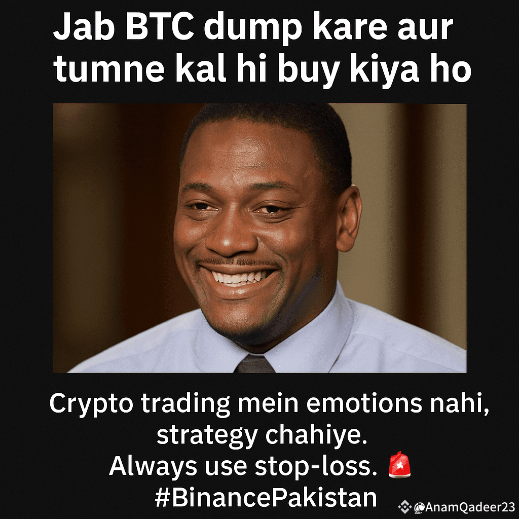 Kabhi kabhi market ki timing galat hoti hai — lekin galti emotions ki hoti hai, charts ki nahi. BTC dump ke waqt stop-loss na ho to loss confirm hai. Smart bano, strategy use karo. 💼📉