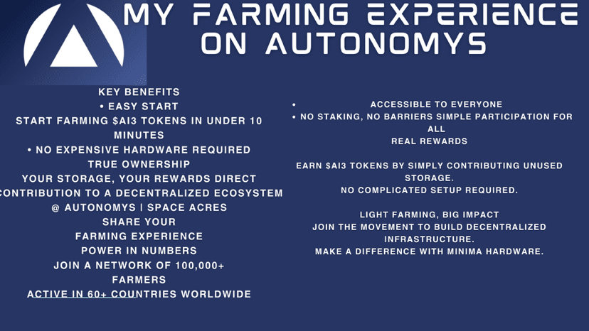 Una dintre caracteristicile remarcabile ale cultivării Autonomys este accesibilitatea sa; nu este nevoie de echipamente costisitoare sau de staking, permițându-ți să folosești un laptop obișnuit. Sistemul de recompense este echitabil, oferind token-uri $AI3 în funcție de contribuțiile tale la stocare și consens. Rețeaua este deschisă pentru toți, întărind o adevărată etică descentralizată.