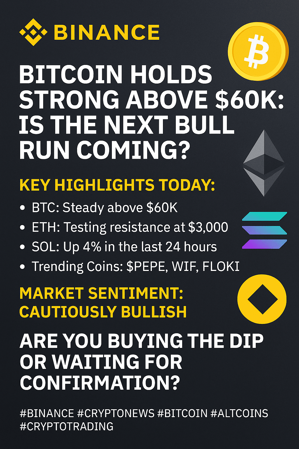 Bitcoin$BTC arată reziliență menținându-se ferm peste 60.000 $, semnalizând încredere puternică în piață. Cu interesul instituțional în creștere și intrările ETF în urcare, mulți traderi își îndreaptă atenția către următoarea rupere.