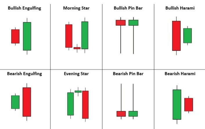 2) grafic de lumânare înfășurată de creștere o lumânare roșie mică urmată de o lumânare verde mai mare care înghite complet lumânarea roșie.
