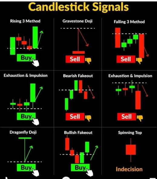 Modelele de lumânări sunt instrumente puternice utilizate în analiza tehnică pentru a prezice mișcările pieței pe baza acțiunii istorice a prețului. Ele oferă comercianților perspective valoroase asupra tendințelor potențial optimiste (ascendente) sau pesimiste (descendente). Graficul pe care l-ai furnizat evidențiază nouă semnale cheie de lumânări care pot ghida deciziile de cumpărare, vânzare sau păstrare. Mai jos este o explicație a fiecărui semnal: