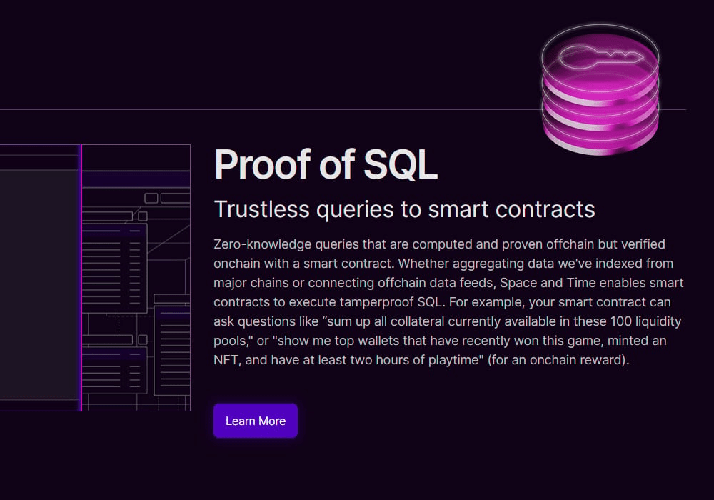 Motorul din spatele Proof of SQL este Space and Time, o platformă hibridă tranzacțională și analitică (HTAP) proiectată pentru era descentralizată.