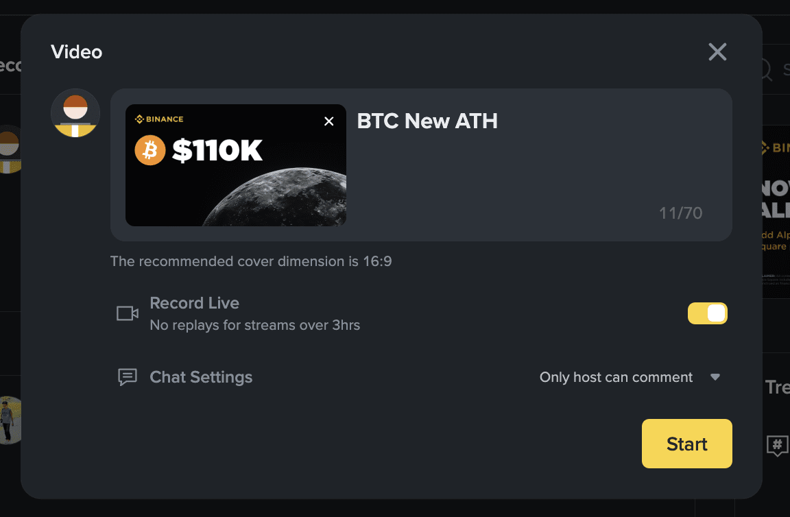 Binance Square are o întârziere de 15-30 de secunde în Live.