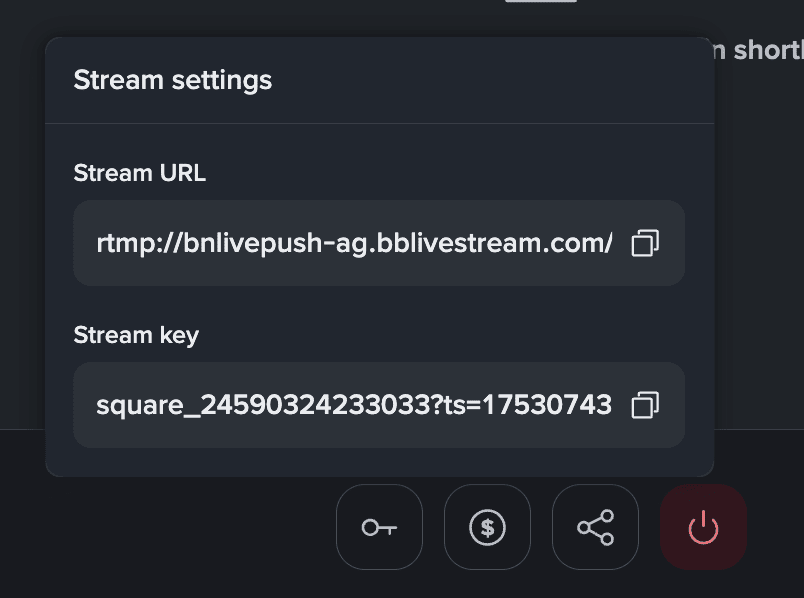 Intrați în camera live, localizați cheile de stream în partea de jos la stânga în panoul de control.