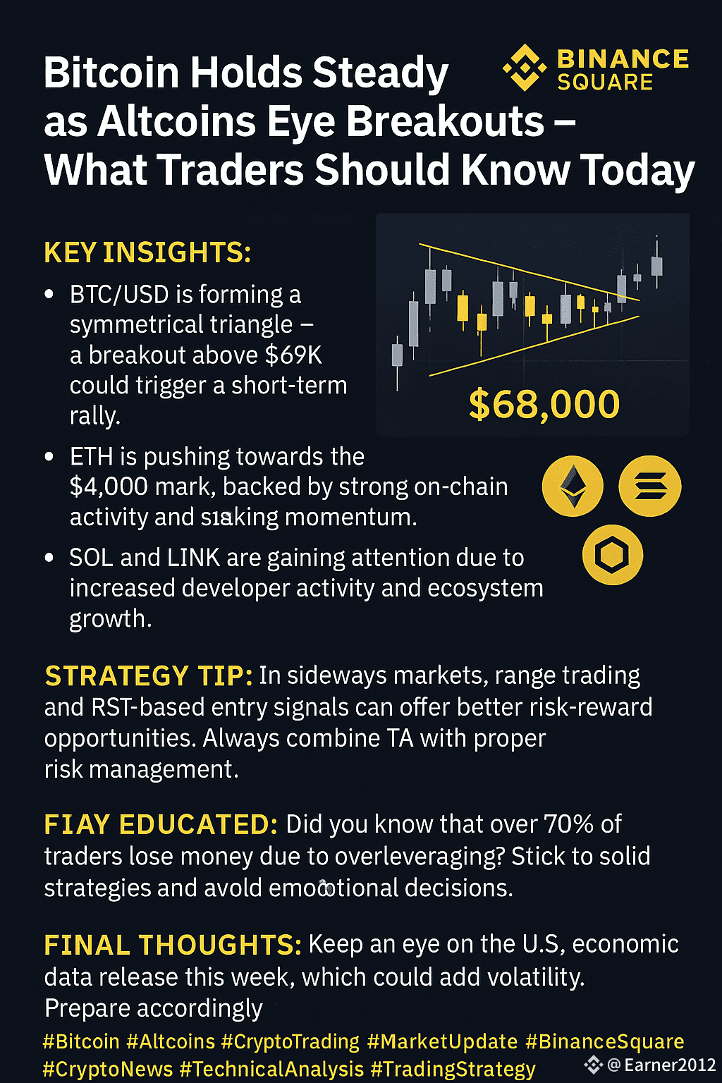 The crypto market is showing signs of consolidation today, with Bitcoin (BTC) hovering around $68,000, holding a strong support level. While BTC remains steady, several altcoins like Ethereum (ETH), Solana (SOL), and Chainlink (LINK) are showing bullish patterns on the charts.
