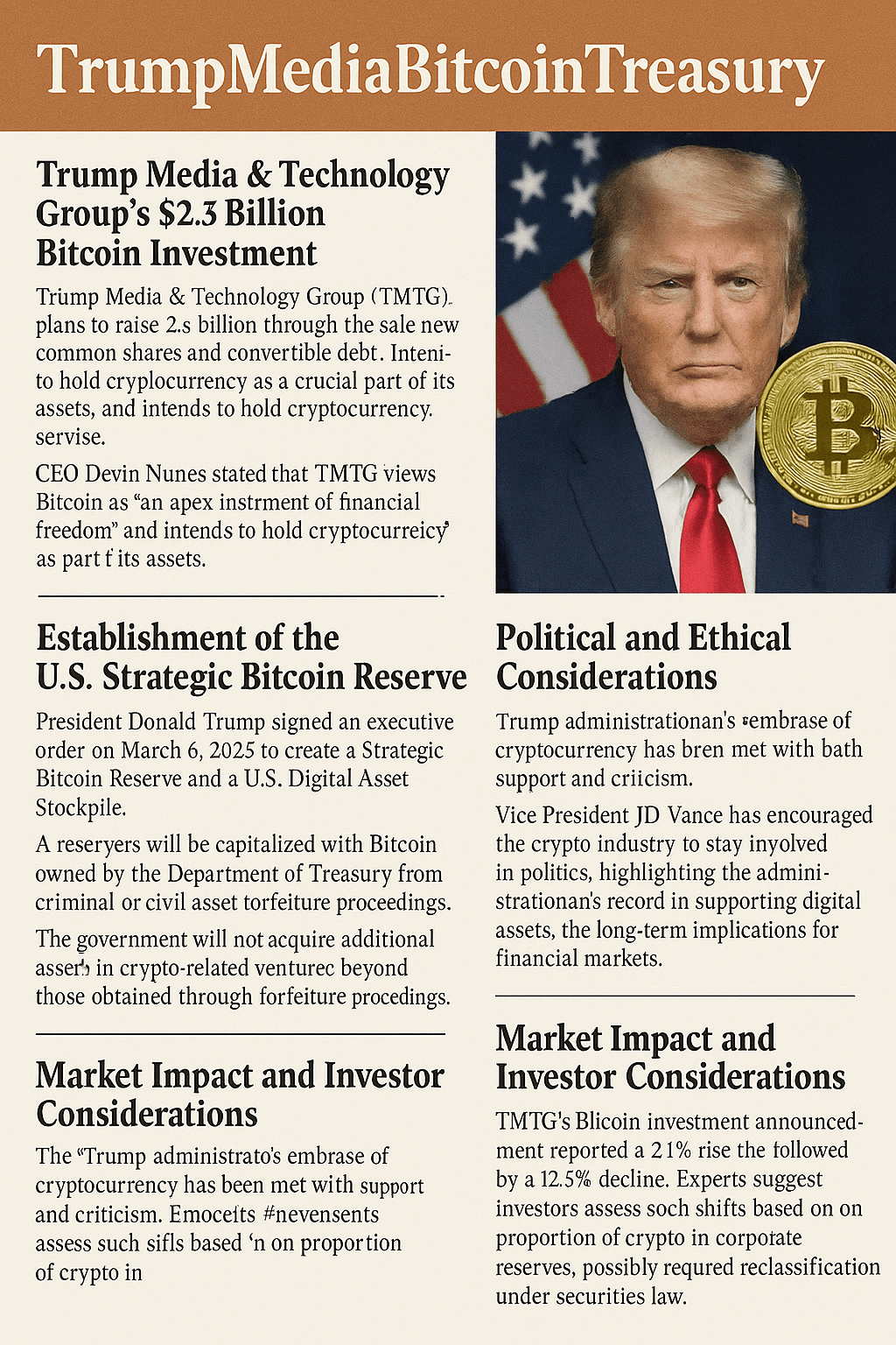 Inițiativa "TrumpMediaBitcoinTreasury" marchează o convergență semnificativă între politică, media și criptomonedă, poziționând administrația Trump și întreprinderile sale afiliate în fruntea adoptării activelor digitale.