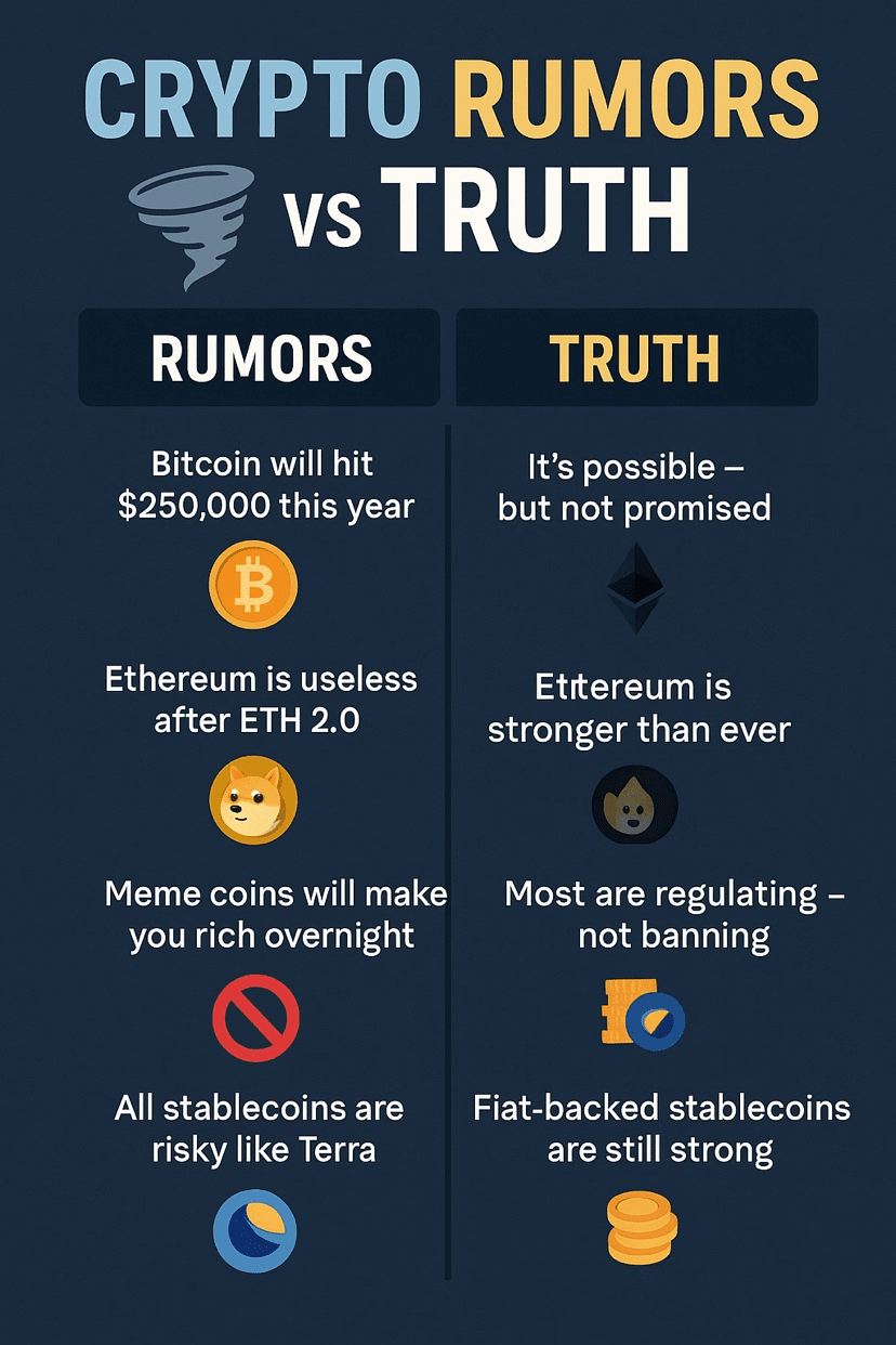Lumea cripto este plină de hype în 2025 — dar nu tot ce auzi este adevărat. Să demontăm cele mai comune zvonuri și să ajungem la fapte.