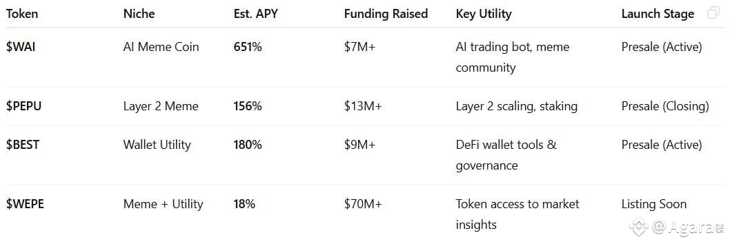 These projects blend high APYs with real or innovative use cases—from AI bots to Layer 2s and DeFi wallets. Early participation in presales and staking can be rewarding—but not without risk.