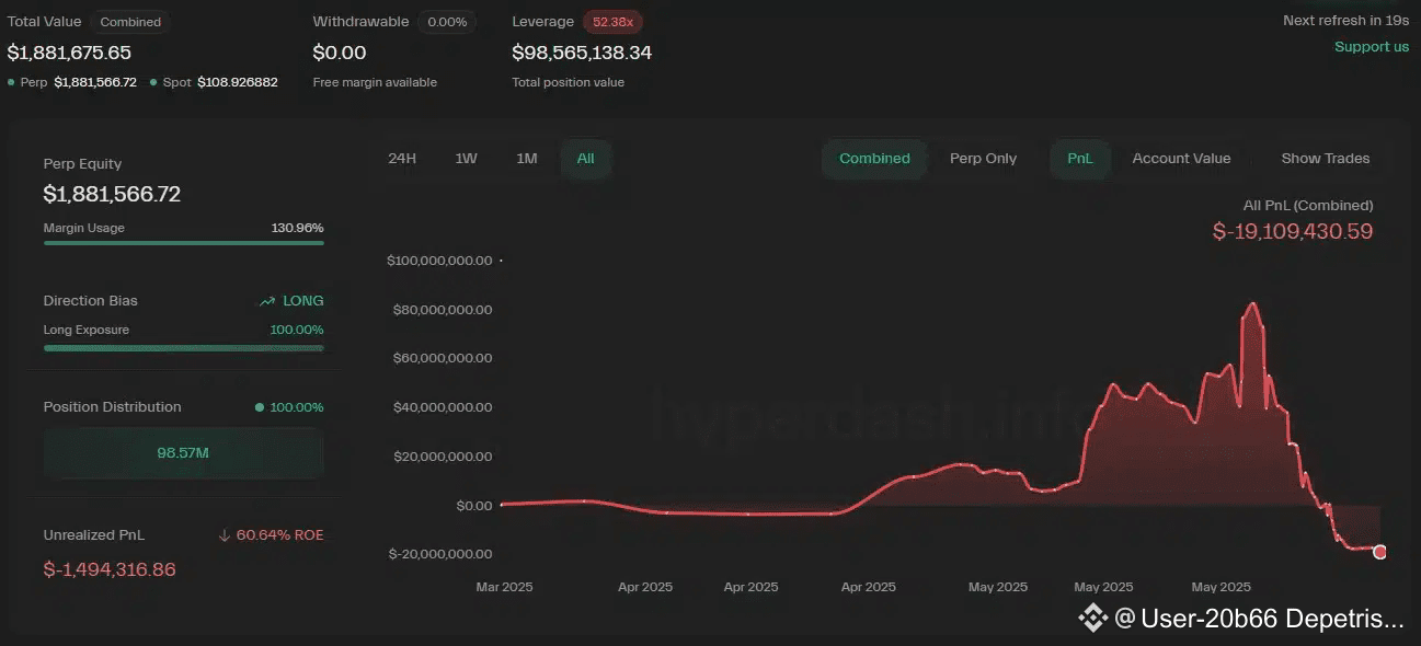 O trader estava usando uma corretora descentralizada, a Hyperliquid, e todos podiam acompanhar os detalhes de suas negociações, incluindo preço de liquidação.