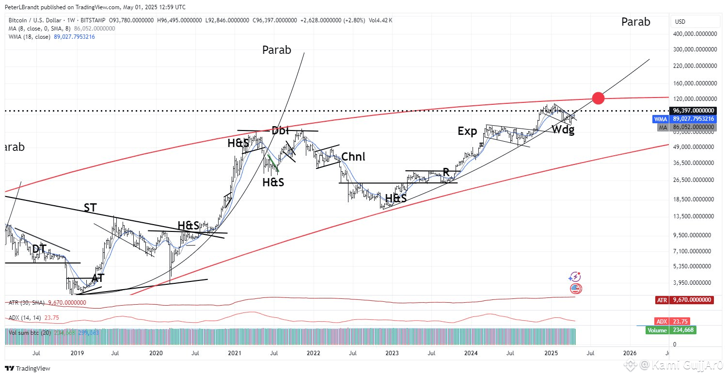 In his May 2025 analysis, Brandt identified a rising wedge pattern and warned that Bitcoin must reclaim its parabolic trendline to stay on track for a $125,000–$150,000 cycle top by August or September 2025.